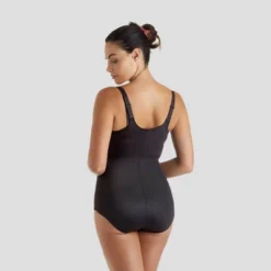 - Tummy tuck effect created by two and three plies of fabric in the front