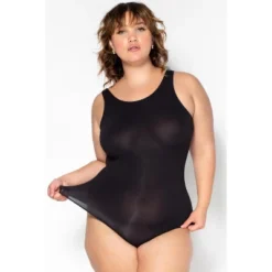 - Inspired by a classic muscle tank fit, this slightly fitted bodysuit features a high scoop neckline.