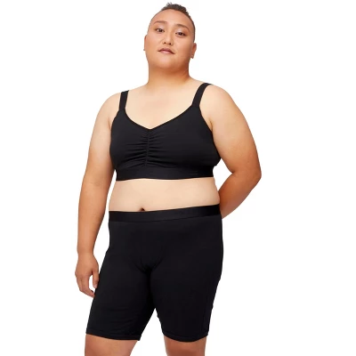 Introducing the TomboyX V-Neck Bralette, a high-quality, sustainable option for comfortable, low impact support. Made with soft, 100% cotton and available in sizes XS-4X, this bralette is size inclusive and perfect for daily wear, lounge and sleep. It features a wireless design with no padding, but has pockets for optional padding inserts if desired. The bralette is tagless and OEKO-TEX Certified, ensuring it is free of harmful chemicals and safe for your skin. Whether you’re looking for a comfy option for everyday wear or just want something to relax in, the TomboyX V-Neck Bralette has got you covered.