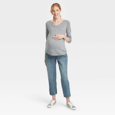 A classic maternity jean with a vintage-inspired, straight-leg look in medium wash denim. Power stretch denim shapes and sculpts while adjusting to your changing body.