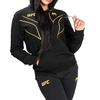 The Venum Women’s UFC Fight Night 2.0 Pullover Hoodie is a part of the Replica Series, the third line of authentic products in the Venum x UFC Series. Bold and powerful designs are inspired by the outfits worn by UFC fighters on Fight Night. This hoodie is the perfect combination of comfort and style! Features: Regular fit. Thick cotton fleece for ultimate comfort. Front pocket. Sublimated graphics. Silk-screened logo. Wash cool at 30 degrees Celsius with similar colors; Tumble dry low. Do not bleach.