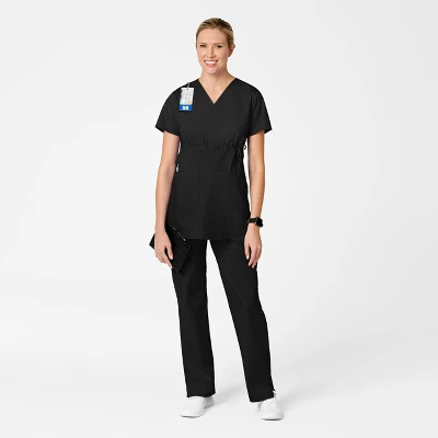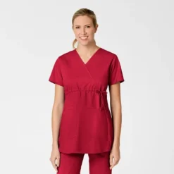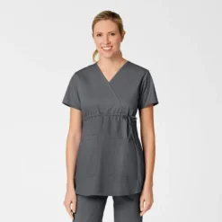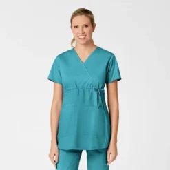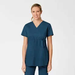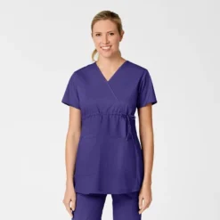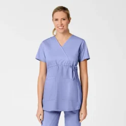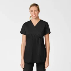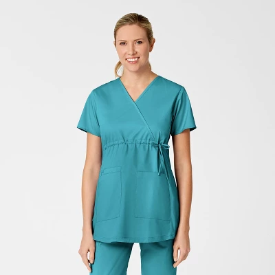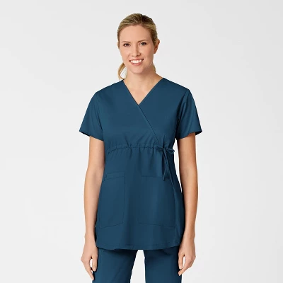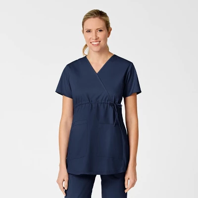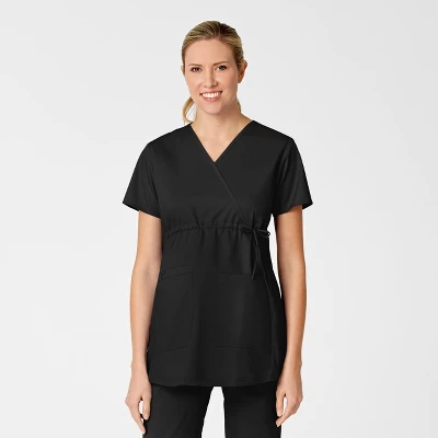 WonderWORK has designed a comfortable, functional uniform built for two. Special motion stretch and an active fit, provide a smooth shape while maintaining perfect comfort throughout the day. The Women’s Maternity Top features two large patch pockets, one pen pocket and a cell phone pocket, as well as dye-to-match knit panels, front waist tie and a longer front length for added coverage through each trimester.