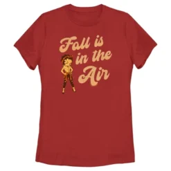 - Strut your stuff with this stylish new women’s t-shirt that is perfect for the fall season! Featuring Betty Boop in her autumn attire along with the phrase: “Fall is in the Air” in an orange hue across the front.