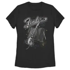 Get ready to hum, strum, and succumb to officially licensed Fender styles! If you’ve always wanted your very own Stratocaster guitar, now is your chance to get one! Or… at least get one on a rockin’ tee! This Women’s Celestial Amp Logo Tee features the iconic Fender logo with a guitar and amp in black and white, surrounded by colorful stars.