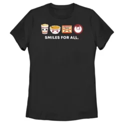 Rich. Flavorful. Satisfying. Everyone’s favorite comfort food brand Maruchan now has adorable officially licensed apparel! Show off your love for all your favorite ramen, instant lunches, and more with these adorable new styles! This adorable Smiles for All Women’s Graphic T-Shirt features a cartoon cup, bowl, and packet of ramen noodles next to the mascot with the phrase “Smiles for all” printed below. Celebrate the food you love with these all-new graphic tees and make something delicious today!