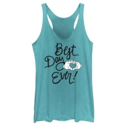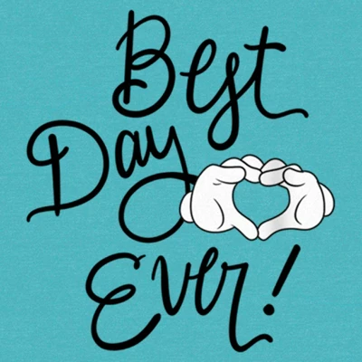 - Strut your stuff with this stylish new women’s racerback tank top that is perfect for every occasion! Featuring the phrase: “Best Day Ever!” in script black lettering and Mickey’s hands making the shape of a heart.