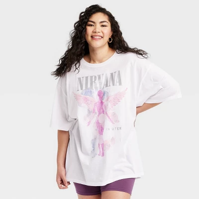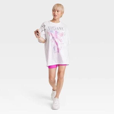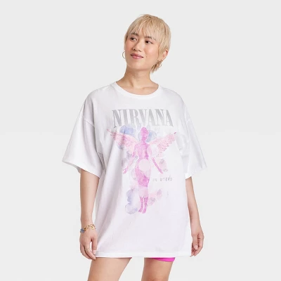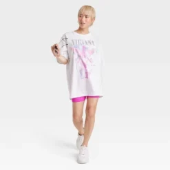 Get ready to rock in style with the Women’s Nirvana Short Sleeve Graphic T-Shirt Dress – White. This dress is the perfect fusion of casual comfort and edginess, making it a must-have addition to your wardrobe. The short sleeves and pullover style make it a grab-and-go option for any occasion. The classic crew neckline adds a timeless touch to the overall design. Slip it on effortlessly and head out the door, whether you’re running errands or meeting friends for coffee. Update your wardrobe with the Women’s Nirvana Short Sleeve Graphic T-Shirt Dress – White.