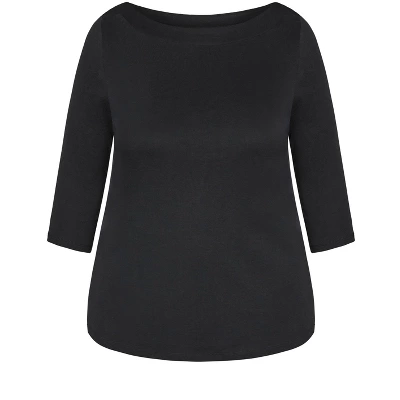 Get essentials you can trust with the Boat Neck Top. A must-have in any wardrobe, this go-to black top adds elegance with a boat neckline and 3/4 length sleeves for versatile year round wear.Everyday style made easy, Avenue is your one-stop-shop for plus size fashion. Inspired by a comfort-meets-style approach, this effortless brand marries relaxed silhouettes with dynamic prints and colors. From casual daywear to staple denim, Avenue has simplified your everyday dressing. Take your day-to-day look to new heights with comfortable basics or eye-catchingly printed pieces, all designed to keep you comfortable while flaunting your curves to perfection. Available in sizes 14 – 40.