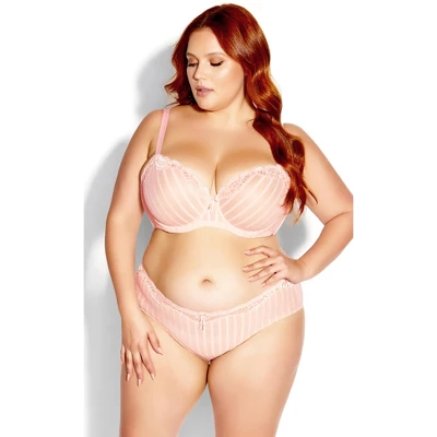 Feel and look completely irresistible in the pink Fifi Panty. Made with an elasticated waistband and 100% Cotton lined gusset, these panties are perfectly comfortable. Meanwhile, the lace trims and striped mesh overlay give it a fashionable finish. Bold and fiercely fashionable, no one does plus size fashion like City Chic. Loved around the globe for its diverse range of fashion-forward styles for any occasion. From show-stopping evening gowns to workwear and casualwear, City Chic will take your style to bold new heights. Available in sizes 14-32.