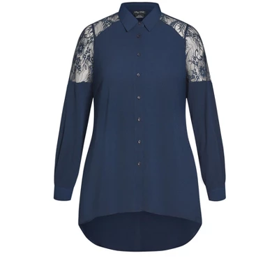 Keep your wardrobe up to date with the sophisticated Lacey Hi Lo Shirt. Chic and oh-so-fabulous, this top boasts lace overlay to the shoulders, long sleeves with button cuffs and classic collar for a timeless style.Bold and fiercely fashionable, no one does plus size fashion like City Chic. Loved around the globe for its diverse range of fashion-forward styles for any occasion. From show-stopping evening gowns to workwear and casualwear, City Chic will take your style to bold new heights. Available in sizes 14-32.