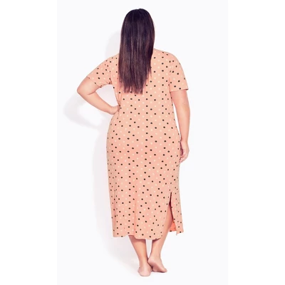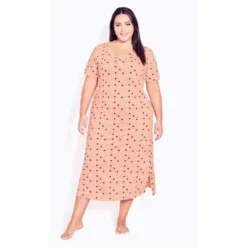 Peachy and oh-so-sweet, experience a pleasant evening routine with the Print Nightdress. Boasting a soft coral hue with short sleeves and a maxi length, this style is sure to melt your heart. Catch up on some zz’s wearing the Print Nightdress. A romantic blush color makes this round neck nightgown a delightful complement to your everyday feminine style, complete with a soft stretch fabrication lending a smooth feel to wake up feeling refreshed and restored. Layer with a plush robe. Casual and effortless, Evans makes everyday style oh-so-easy. This beloved English brand offers quality, curve-loving pieces for any occasion that will make you look and feel your best. From easy-going dresses to statement essentials, Evans is comfortable, tasteful and perfect for your everyday wardrobe. Available in sizes 14 – 32.