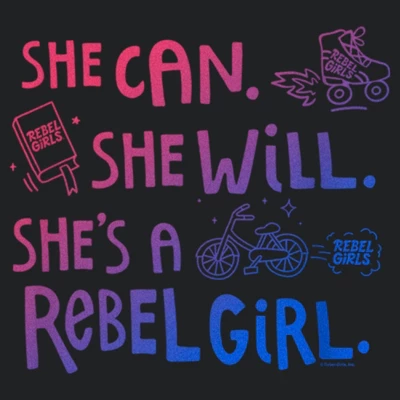 Introduce your kids to the world of Rebel Girls, explore hundreds of motivational stories, learn more about inspiring women from all around the world, and dream big with this officially licensed Rebel Girls She Can She Will Doodles Women’s Graphic Racerback Tank Top! This colorful tank features the phrase: “She Can. She Will. She’s A Rebel Girl.” in ombre style letters that fade from pink to blue alongside books, bikes, and roller skates doodles. Help change the world for future generations of women while wearing this new Rebel Girls apparel today and stay Rebel forever!