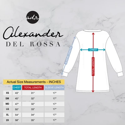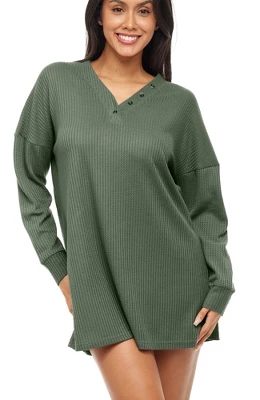 This soft, oversized waffle knit sleepshirt for women from Alexander Del Rossa is comfortable, durable, and classy. Made from a premium fabric that is light, soft, durable. Fabric will not shrink and the colors have been tested extensively and do not bleed. Top features include a deep v-neck cut with decorative buttons. Sleeves are slightly gathered at the cuff for a puffed look. Length is mid-thigh.