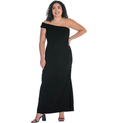 Make a stunning entrance with the 24seven Comfort Apparel Formal One Shoulder Trumpet Shape Plus sizeMaxi Dress with Rouched Sides. This show stopping dress effortlessly combines elegance and comfort, making it the perfect choice for any formal occasion. The one shoulder design adds a touch of sophistication, while the trumpet shape and rouched sides create a flattering and glamorous silhouette. Crafted with care, this fitted dress boasts a slight flare from the knee down, ensuring graceful movement and a captivating look. Available in three exquisite color options, you can find the perfect hue to match your personal style. Whether its a gala, wedding, or special event, this maxi dress will make you the center of attention.
